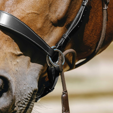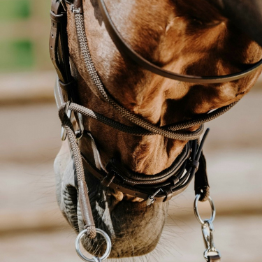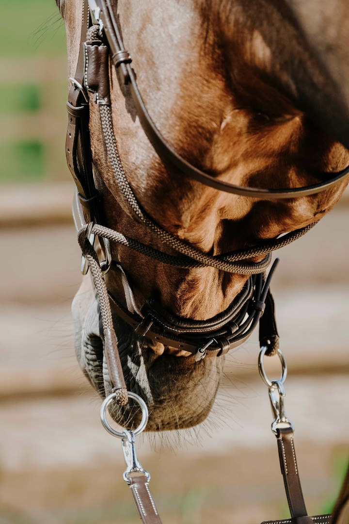 Безтрензельное оголовье для лучшего друга. Подходит для чувствительных лошадей или тех, у кого есть проблемы с зубами или ротовой полостью, делая верховую езду более комфортной для животного. Это оголовье позволяет всаднику сохранять хороший контроль над направлением и скоростью движения лошади. Перекрещенные веревочные ремни расположены под щечными упорами и соединены с поводьями через фиксированные кольца, что делает управление лошадью для нее анатомически комфортным. Красивое и практичное оголовье из натуральной кожи, которое является альтернативой уздечкам с трензелем. Оголовье выполнено из натуральной кожи высокого качества. Анатомической формы затылочный и налобный ремни, имеют мягкие кожаные подложки для большего комфорта вашей лошади. Фурнитура серебряного цвета из нержавеющей стали. В комплект входят ремешковые поводья с карабинами.