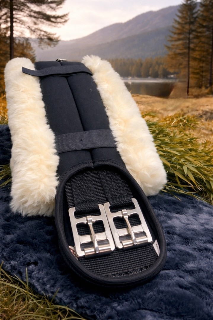 Изготовленная из 100% натуральной овчины класса “premium” этот мех обеспечивает: - бережную защиту от натирания; - профилактику отёков и раздражений - оптимальную терморегуляцию — овчина дышит, отводит влагу и сохраняет комфортную температуру, независимо от погоды. Конструкция крепления — продумана до мелочей: - Две плотные резинки по бокам надежно фиксируют мех на подпруге, не позволяя ей смещаться даже при активной работе; - Две центральные липучки с разделяющимся замком обеспечивают быстрое и точное позиционирование — легко надеть, легко снять, без лишних движений. Размеры: - Ширина тканевой части — 10 см (идеально подходит почти под любую подпругу); - Общая ширина с расправленным мехом — 18 см, что создаёт широкую, мягкую «подушку» для максимальной защиты и расслабления мышц. Наружная часть выполнена из стёганой чёрной ткани — прочной, износостойкой и эстетичной. Она устойчива к загрязнениям, легко чистится и сохраняет презентабельный вид даже после интенсивного использования. Натуральный, упругий мех овчины не сползает, не линяет и долгое время сохраняет свои свойства — даже при регулярном использовании.