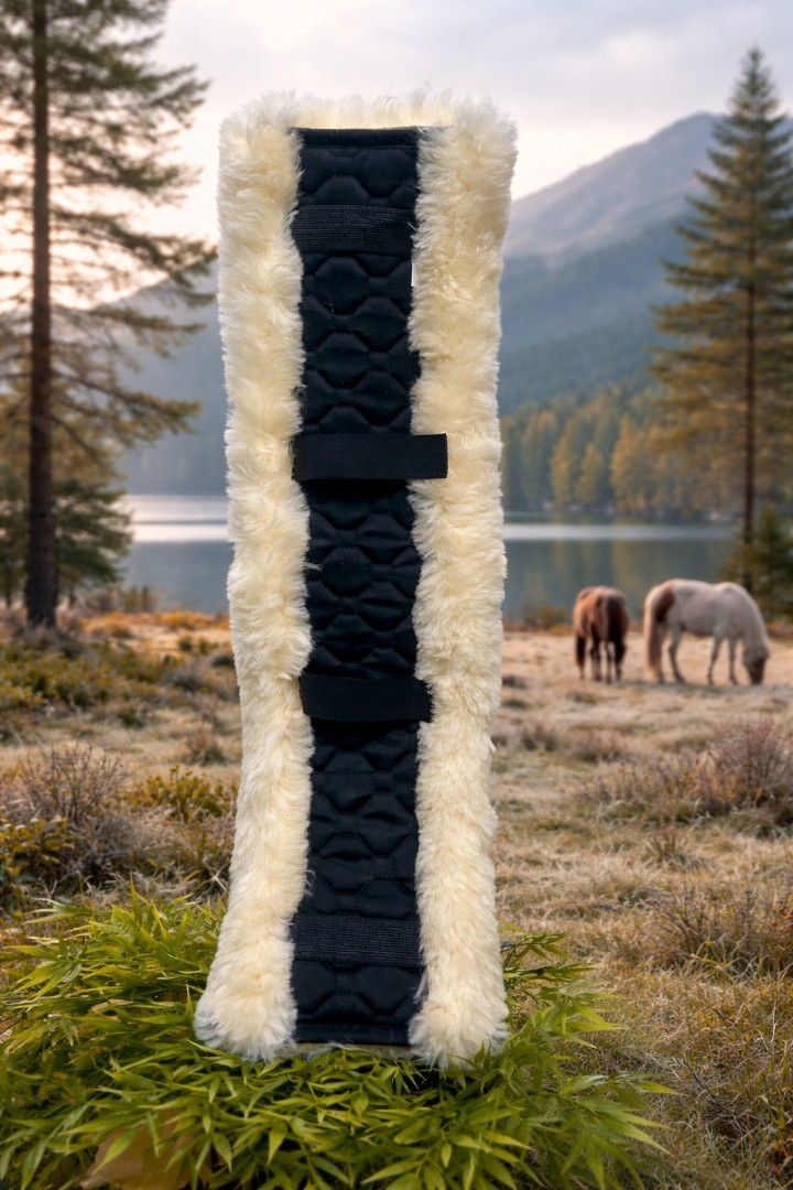 Изготовленная из 100% натуральной овчины класса “premium” этот мех обеспечивает: - бережную защиту от натирания; - профилактику отёков и раздражений - оптимальную терморегуляцию — овчина дышит, отводит влагу и сохраняет комфортную температуру, независимо от погоды. Конструкция крепления — продумана до мелочей: - Две плотные резинки по бокам надежно фиксируют мех на подпруге, не позволяя ей смещаться даже при активной работе; - Две центральные липучки с разделяющимся замком обеспечивают быстрое и точное позиционирование — легко надеть, легко снять, без лишних движений. Размеры: - Ширина тканевой части — 10 см (идеально подходит почти под любую подпругу); - Общая ширина с расправленным мехом — 18 см, что создаёт широкую, мягкую «подушку» для максимальной защиты и расслабления мышц. Наружная часть выполнена из стёганой чёрной ткани — прочной, износостойкой и эстетичной. Она устойчива к загрязнениям, легко чистится и сохраняет презентабельный вид даже после интенсивного использования. Натуральный, упругий мех овчины не сползает, не линяет и долгое время сохраняет свои свойства — даже при регулярном использовании.