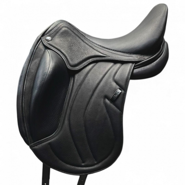 Профессиональное и красивое выездковое седло. Для изготовления этой модели седла используется натуральная кожа высокого качества, обладающая нескользящим эффектом. Выполнено из премиальной нескользящей кожи. Отличную посадку и комфорт обеспечивают глубокое седалище и большой коленный упор. Ленчик в этой модели может быть подогнан для вашей лошади при необходимости. Переобжимной ленчик и пенные панели.