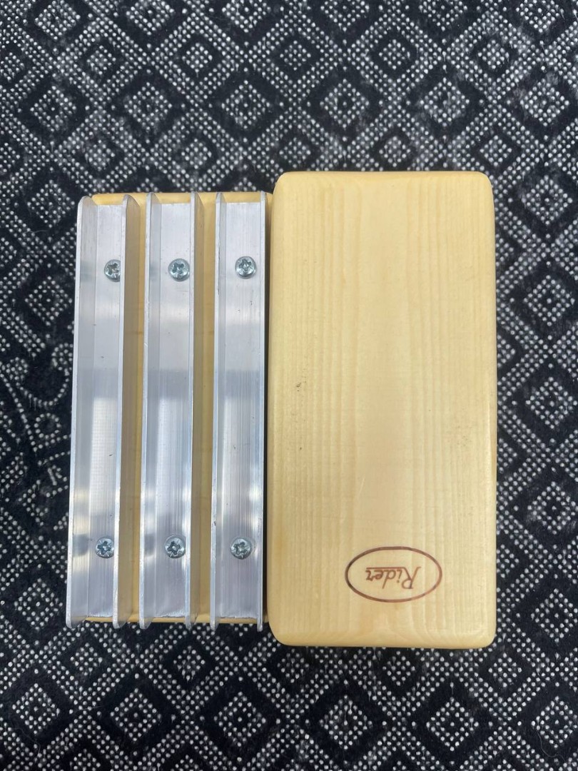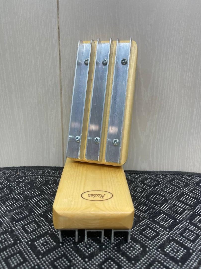 Скребница алюминиевая на деревянной основе. Деревянная основа скребницы покрыта влагостойким и антисептическим лаком. Профиль из алюминия тщательно отшлифован, не имеет зацепок, чтобы не повредить кожу лошади. Ребристые пластины профиля отлично вычищают засохшую грязь, и навоз с шерсти лошади, снимают "заклейки". Избавиться от грязи на самой скребнице можно выстукивая её о деревянные стены денника.