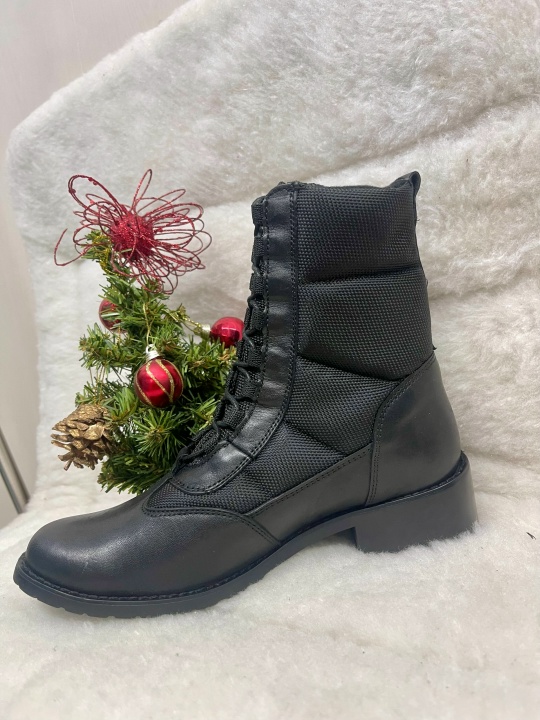 Ботинки зимние с высоким показателем теплоизоляции. Комфортная модель на среднюю ширину стопы с высоким верхом, закрывающим подъём. Подкладка - 100% полиэстер , подошва - резиновая нескользящая, стелька также синтетическая утеплённая. Материал верха комбинированный: синтетическая основа с вставками натуральной кожи, обеспечивающими комфорт и долговечность. Сплошной мягкий язычок дополнительно препятствует попаданию холодного воздуха. Лёгкая шнуровка. Теплые, удобные и легкие ботинки!