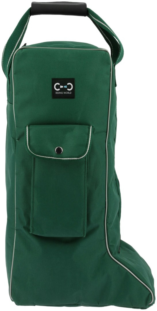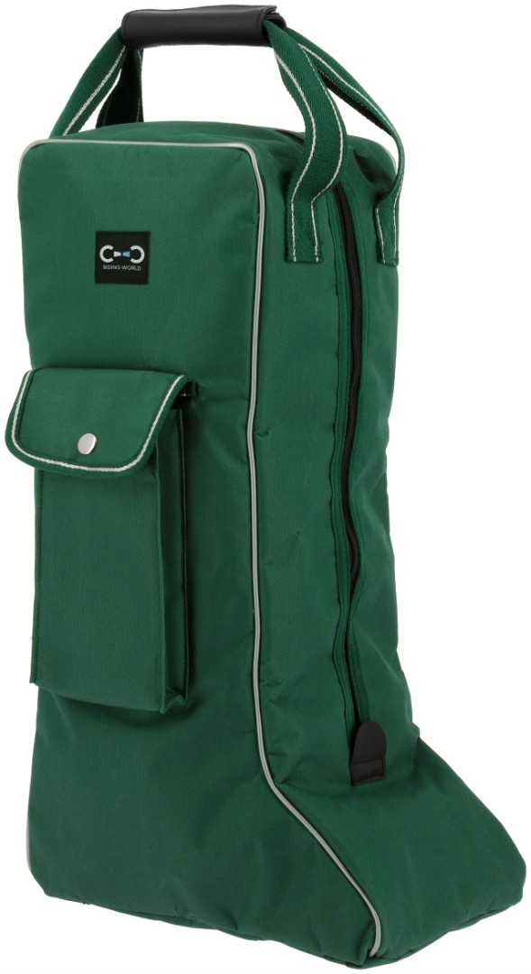 Красивая сумка для сапог изумрудного цвета с серебристым кантом. Сумка изготовлена из плотной ткани, которая прекрасно «держит» объем и не подвержена воздействию разных температур. Внутренняя часть из плотного грязеотталкивающего материала. Прочная молния на всю высоту сумки позволит быстро и удобно убирать сапоги внутрь. Две ручки сверху, которые можно соединить вставкой из искусственной кожи на липучке для удобного ношения сумки. Боковой карман на кнопке довольно вместителен и позволит сложить в него необходимые мелочи. Предусмотрено закрытое прозрачным пластиком «окошко», для каких либо записей. Дно сумки имеет четыре пластиковые «ножки» для защиты дна сумки и устойчивости. Высота сумки 53 см, размер основания 18*30 см.